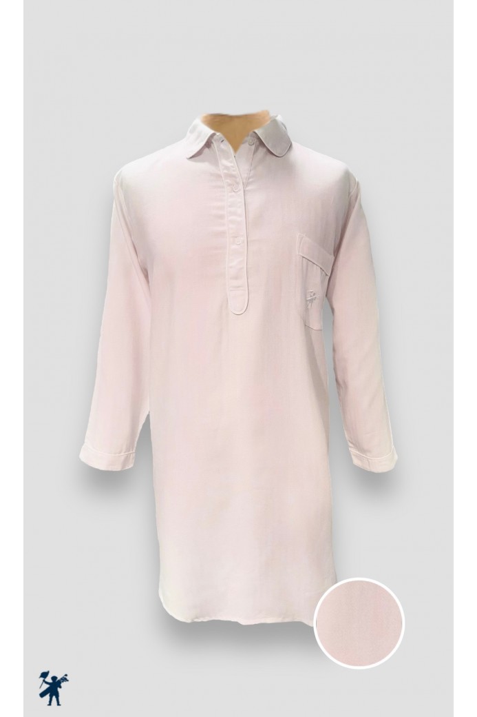 Chemise de nuit forme liquette manches longues, poche poitrine avec logo brodé, finition passepoil (col, manches, patte de boutonnage)100% coton chevron